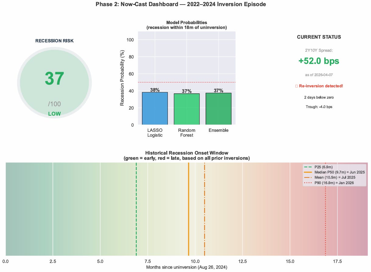 What I can say: the feature selection is economically intuitive, the validation is structurally sound, and the live tracker updates daily from official FRED data. That’s more rigor than most of what you’ll read on financial Twitter.
