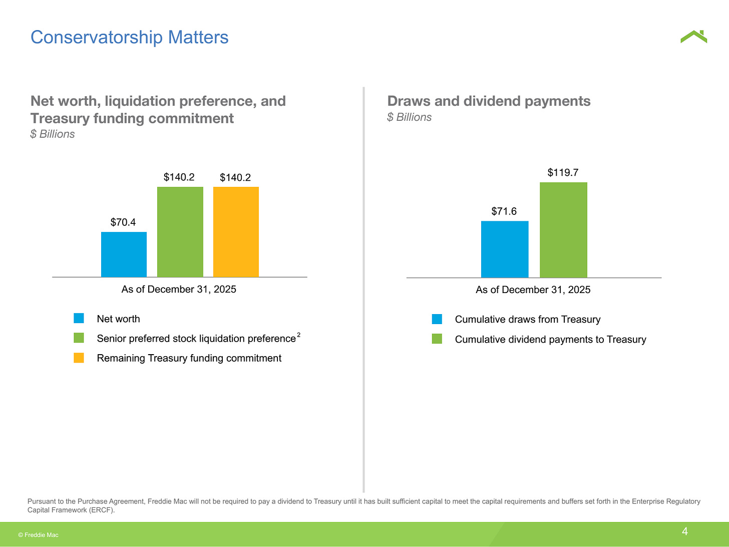 Freddie Mac stated explicitly on their Q4 2025 earnings call: “Capital shortfall to regulatory capital, excluding buffers, was $106 billion because the $73 billion of senior preferred stock does not qualify as regulatory capital.”